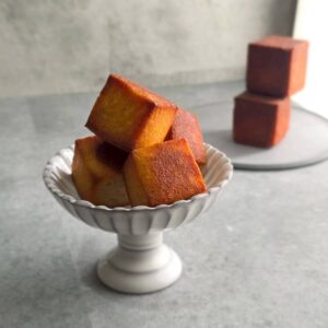 大好きなカリカリの角を増やしたくて、今までキューブ型のフィナンシェを商品化しようと焼いてきましたが12回目の試作にして金塊型に原点回帰。