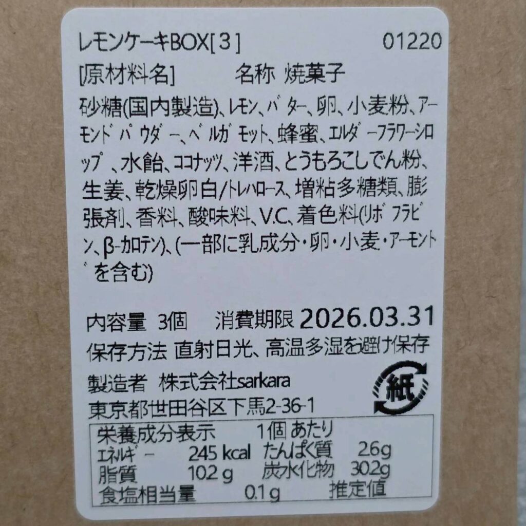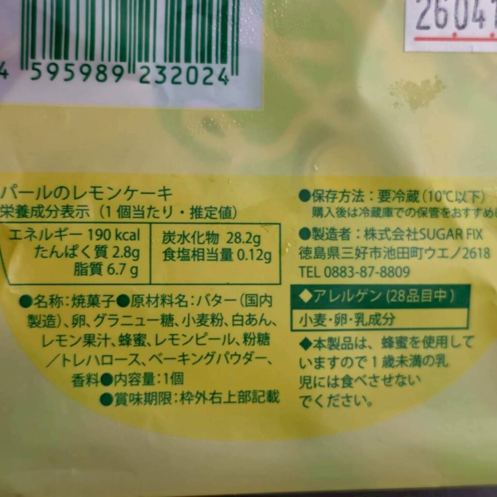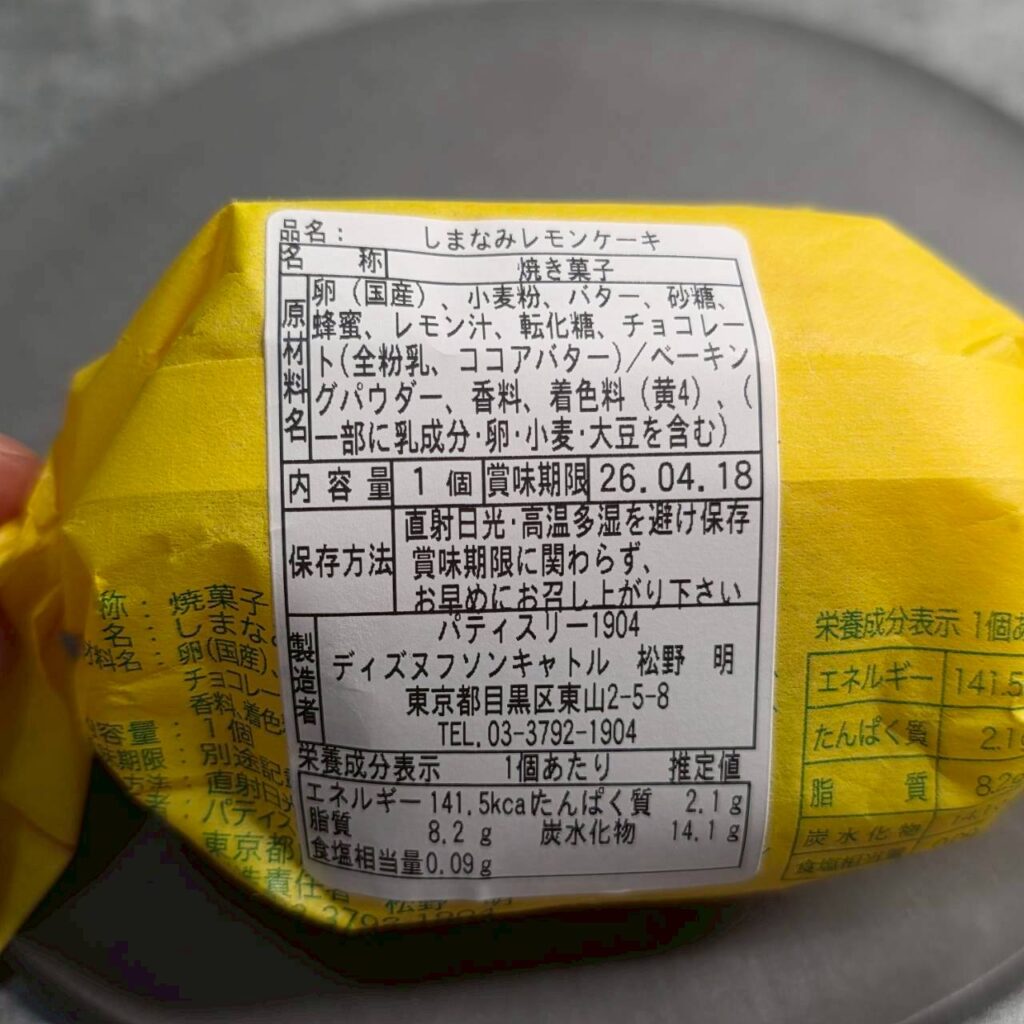 生地は超しっとり系でしたが、肝心のレモン感は感じず、酸味はなく、香りも弱かったです。レモン感というより甘味の印象が強くてレモンケーキと言われると???という感じがしました。