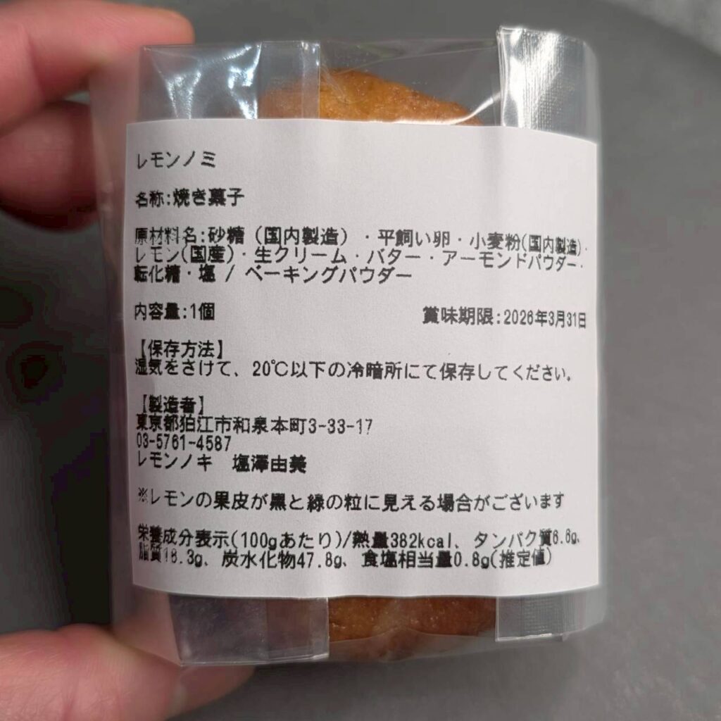 ジューシーで酸味をしっかり感じられつつ、あわせてレモンの苦味まで感じました。また、大きめのレモンピールがゴロゴロと入っており『これぞレモンケーキ』と思えるような一品だと思います。今回食べた中では一番レモン感のあるレモンケーキでした。