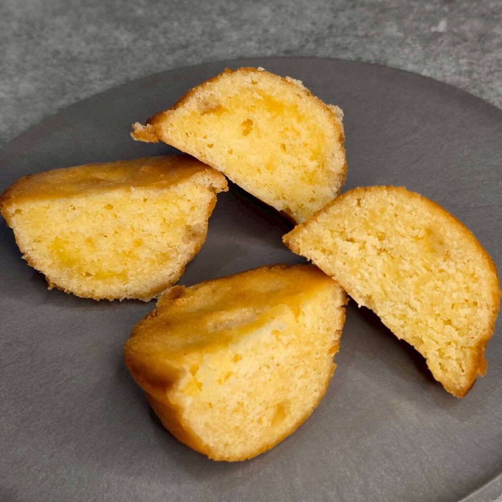 生地はしっとりバターケーキ系でした。砂糖が多いのか、はちみつが入っているためか表面にややベタつきがありました。